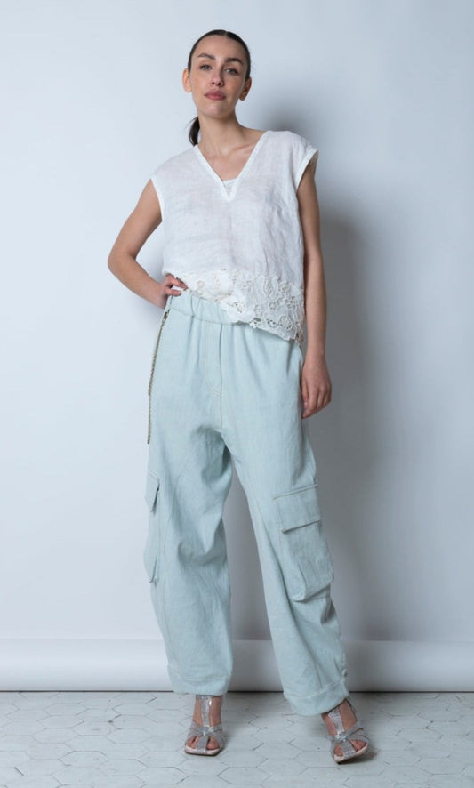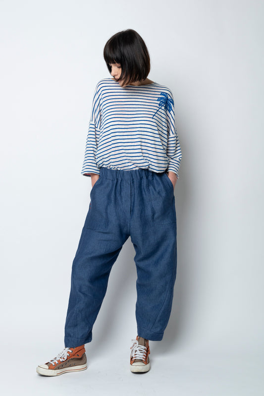 Pantalone Balloon in Lino Indaco Double face mod. Re:versibile