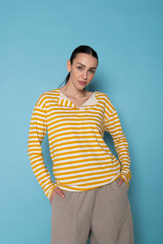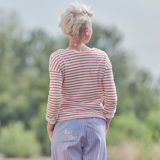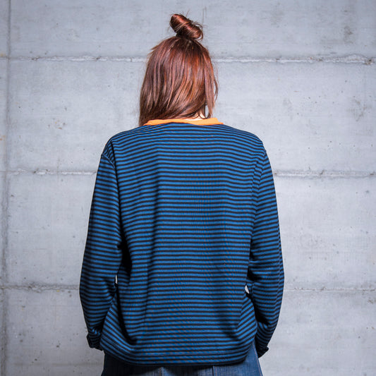 T-shirt manica lunga a righe blu/nera reversibile Mod. Re-fugio