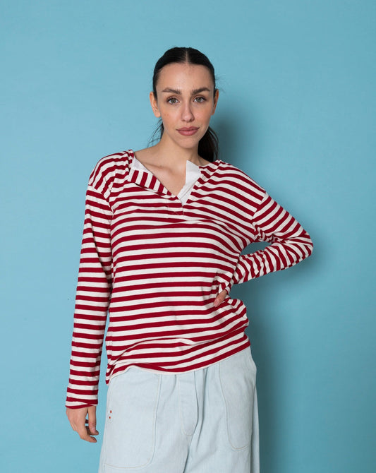T- shirt manica lunga a righe bianco/rossa Mod. Re-te
