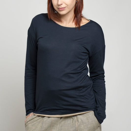 T- shirt manica lunga Double Face Blu/Beige Mod. Re-te