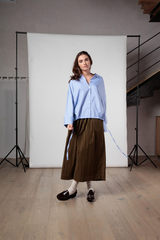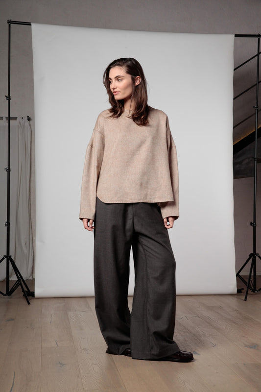 La collezione AI25 esplora la reversibilità come linguaggio progettuale, con volumi morbidi ispirati all’estetica Japandi. I materiali deadstock – lane pure, alpache, lini, cotoni – danno vita a texture sofisticate e composizioni ricercate. Un guardaroba essenziale, costruito con cura e visione.