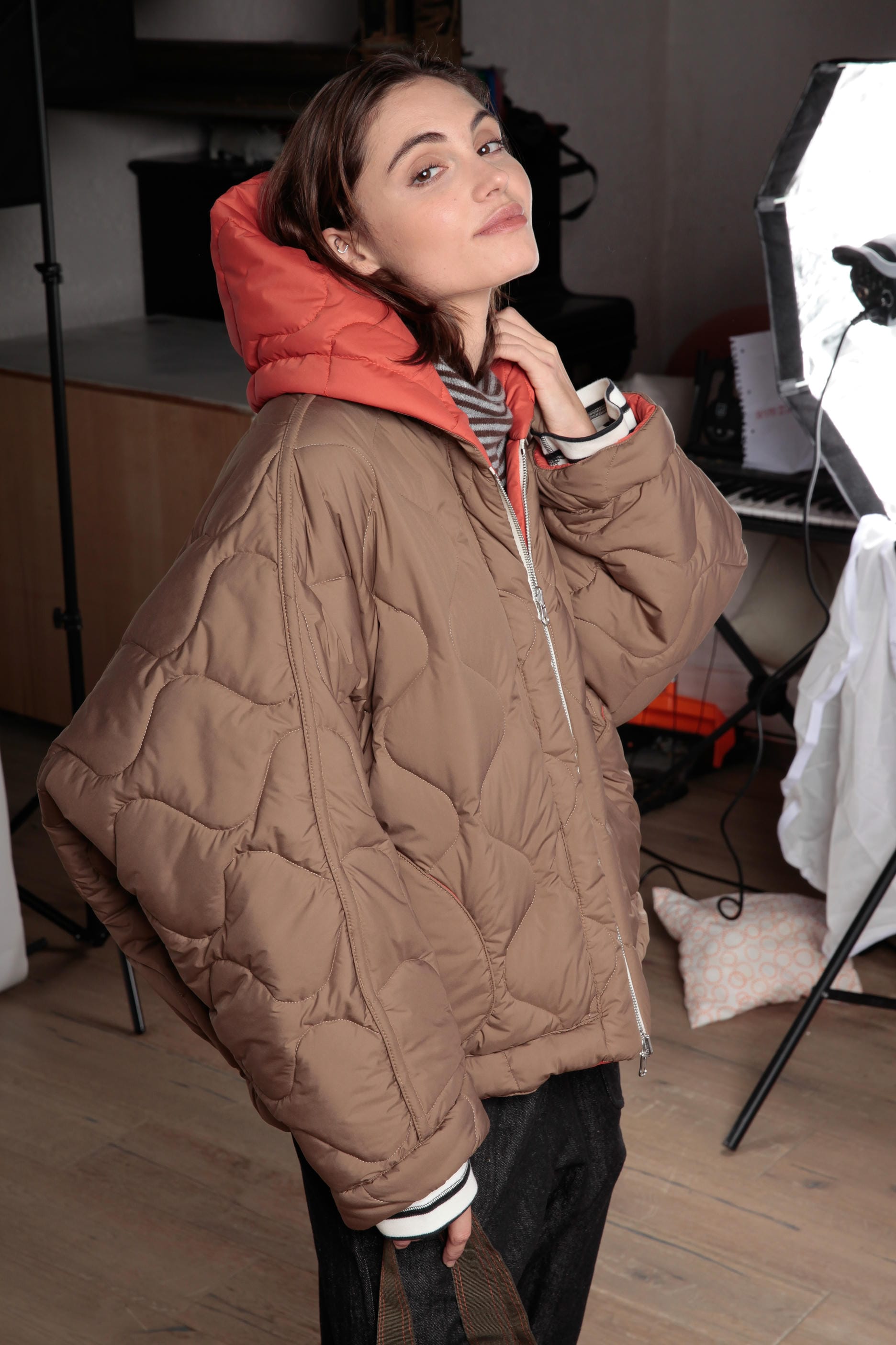 Re-gista, giacca bomber kimono con cappuccio totalmente reversibile. Realizzata in nylon trapuntato 140 gr. calda, leggera e super confortevole. Tasche e cerniera doppia e due colorazioni in un solo capo: sabbia e arancio. Perfetto per chi vuole versatilità e praticità in un unico capo.